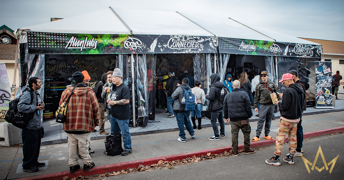 We linked up with some of our favorite brands for the event. Per usual, the Alien Labs / Connected Booth was front and center grabbing lots of attention. Alien Labs had some really amazing offerings: a line up of 4 or 5 tester strains including a Purple Urkle x Planet Dosi. (Pictured Below)