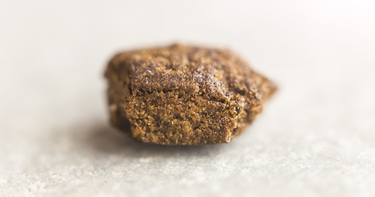 - Hash: Created with water, ice and mesh screens to pull out trichomes into a paste-like consistency.