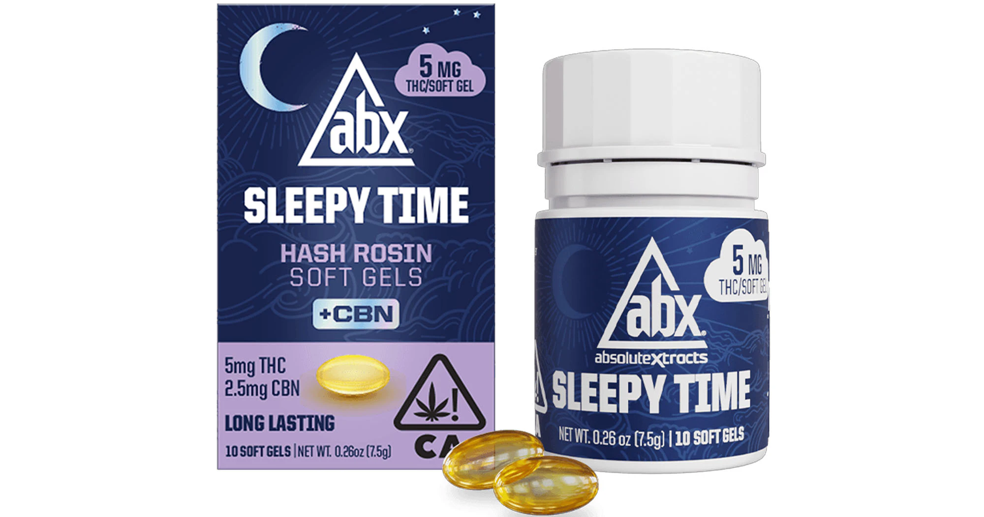 Unwind and relax with 5mg Sleepy Time Solventless + CBN Soft Gels from ABX. These capsules offer a potentially tranquil experience, perfect for those seeking a little extra relaxation. With a touch of CBN, these soft gels may help promote a restful night's sleep. Just pop one and drift off into dreamland without a care in the world.